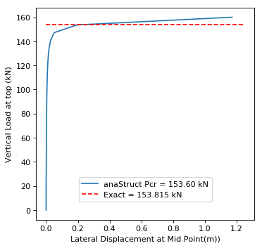 Dari grafik di atas, terlihat perubahan perpindahan lateral yang tiba-tiba dan besar, yang menandakan terjadinya tekuk. Hasil analisa diperoleh kuat tekuk kritis (Pcr) sebesar 153,6 kN. Maka, dapat dibandingkan dari hasil analisa sebelumnya sebagai berikut.