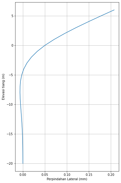 Maka, diperoleh perpindahan lateral dipuncak sebesar disp = PL^3 / 3EI = 0,385 mm