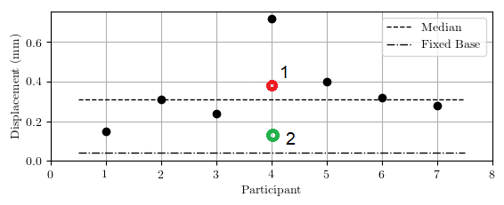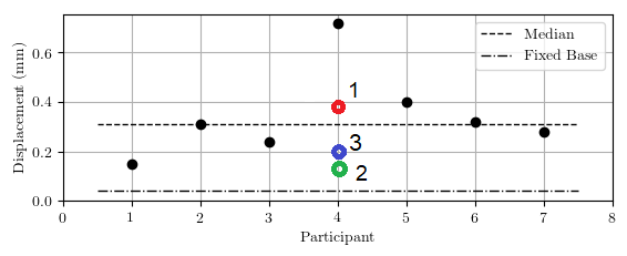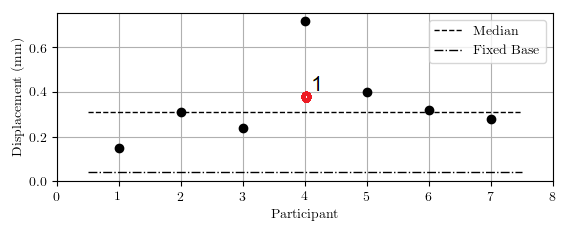 Jika diplot dalam grafik hasil modelling dari 7 partisipan lain, terlihat perpindahan masuk dalam rentang (min/max) dan mendekati nilai median sebesar 0,31 mm.